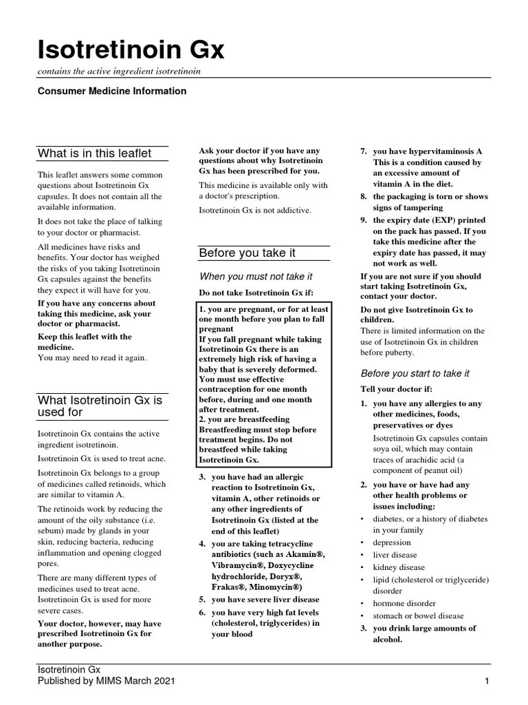 Isotretinoin GX What Is in This Leaflet PDF Medicine Diseases