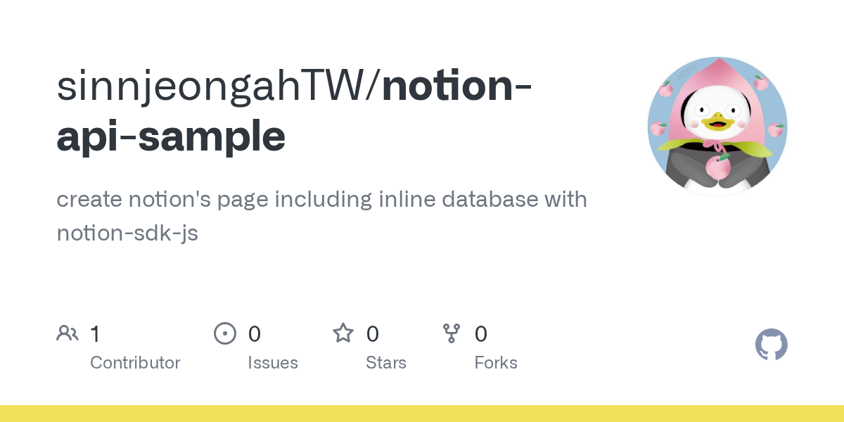 GitHub sinnjeongahTW/notionapisample create notion's page