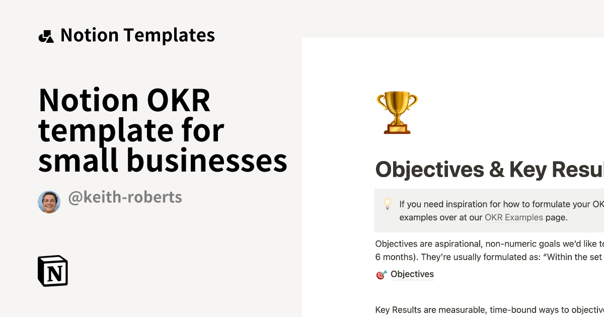 Notion OKR template for small businesses Notion Template